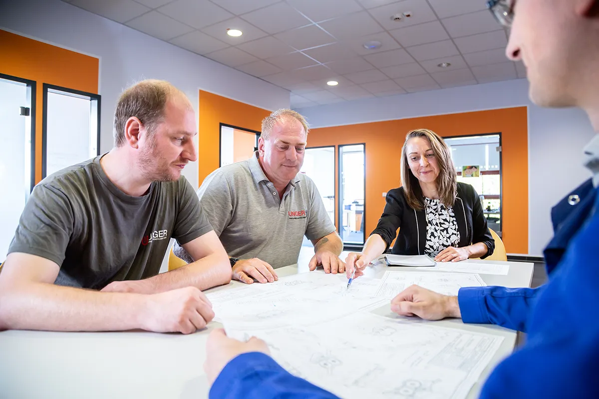 Unser Vertriebsteam agiert als Problemlöser, Bedürfniserkenner, Mitdenker und Wegbereiter. Voraussetzung ist dafür eine solide „Standleitung“ zu Ihrem Projektteam, Ihrem Beschaffungsmanagement (Projekteinkauf), Ihrer Entwicklung und der UNGER Forschungs- und Entwicklungsabteilung.